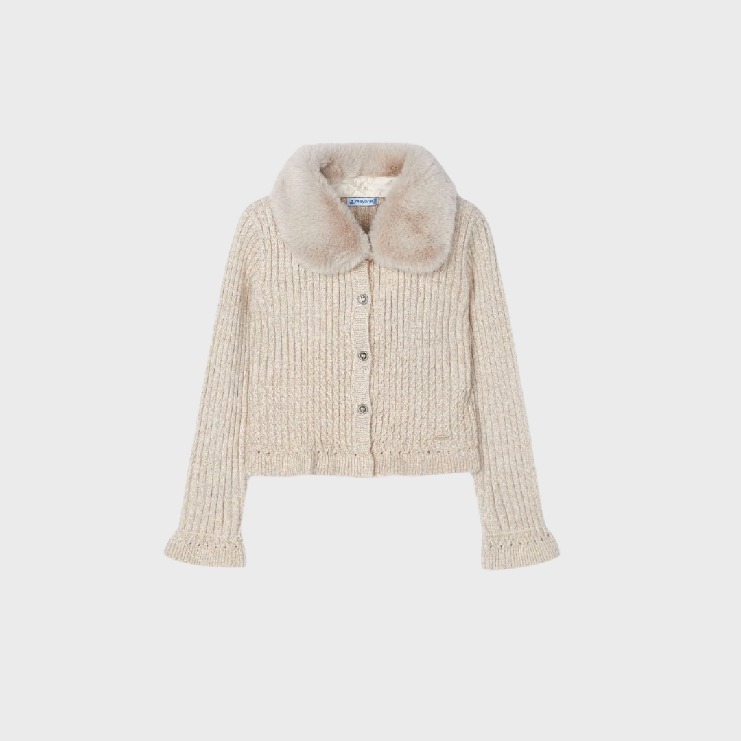 Cardigan in maglia colletto pellicciotto bambina Mayoral
